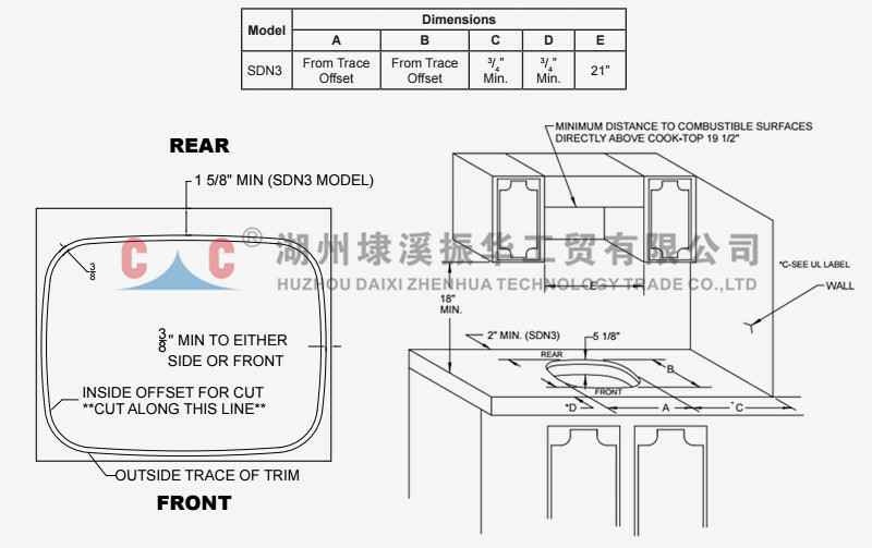 孔尺寸(长*宽*倒角):555mm * 465mm * 130mm
